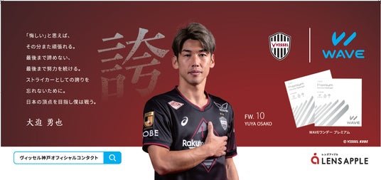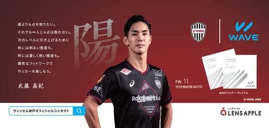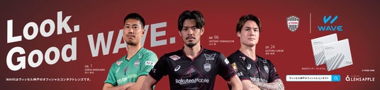 WAVEのキャッチコピーである「Look. Good WAVE」をバックに、前川黛也選手、酒井高徳選手、山口蛍選手を起用したWAVEとヴィッセル神戸のコラボレーションがより引き立つデザインです。