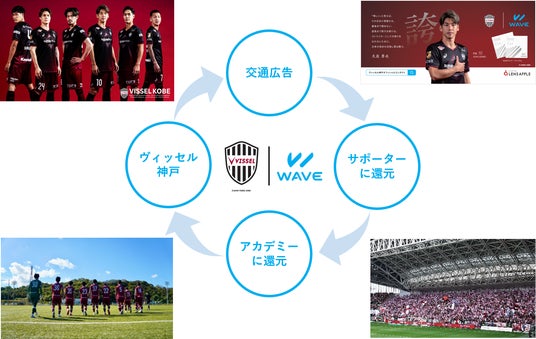 本取組みは、神戸市営地下鉄海岸線車内に掲示された、パレンテオリジナルブランド「WAVE」とヴィッセル神戸がコラボレーションした交通広告を掲示終了後全て回収し、オリジナルグッズとしてサポーター向けに販売、売上金全額をヴィッセル神戸アカデミーへ寄付する新しい取り組みです。