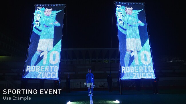 重量物設営が難しい環境に対応する約11kg、幅6.8mの軽量・巨大ディスプレイを提案