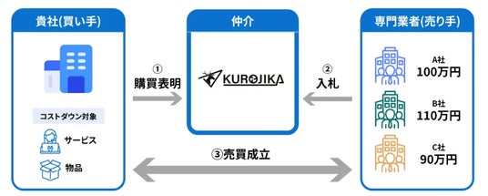クロジカおよびメインパートナー企業(過去15年超のコスト削減実績)でリサーチおよび実績把握している「品質・価格競争力の高いパートナー」がリバースオークションに参加するため、本来は企業社内で発生する「調査にかかる手間やコスト、選定失敗リスク」を低減することもできます。