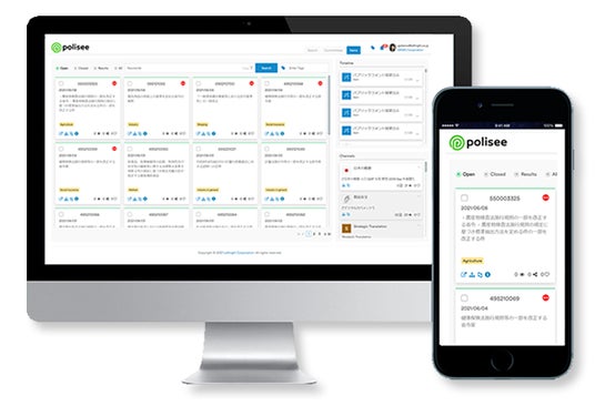 ※1 当社の提供する「polisee(R)」は、政党、政府省庁、有識者の最新情報をPolicy-Making Lifecycle(R)に沿って一元化し、ビジュアルに分析・検索・監視する特許取得済みのプラットフォームです。日本語と英語に対応し、グローバル企業の情報共有や戦略策定を支援します。また、渉外担当を持たない中小企業でも、法令改正に対して積極的にタイムリーな対応が可能になります。