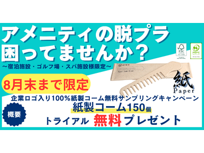 名称:「アメニティの脱プラ困ってませんか?」 ~100%紙製コーム無料サンプリングキャンペーン~