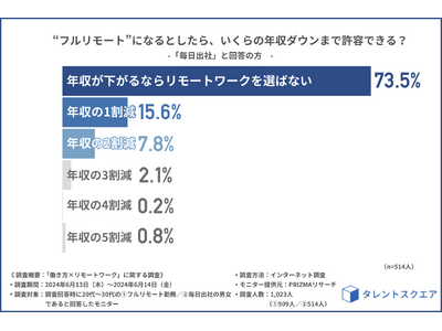 はじめに、毎日出社の方に“フルリモート”になるとしたらいくらの年収ダウンまで許容できるのかうかがっていきたいと思います。