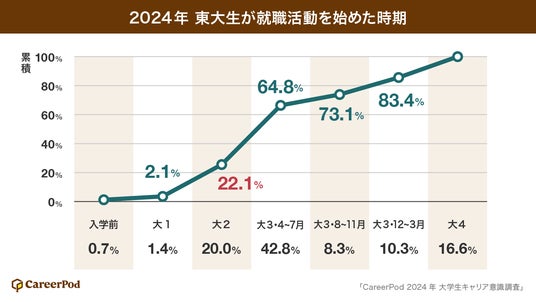 2024年 東大生が就職活動を始めた時期(「CareerPod 2024年 大学生キャリア意識調査」より)