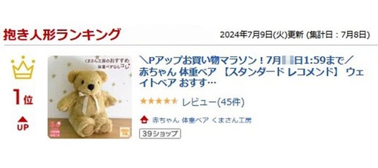 赤ちゃんの体重ベアくまさん工房楽天市場店では、7月1日より販売開始した「レコメンド体重ベア」が大変好評をいただき、ランキング入りを果たしました。これを受け、