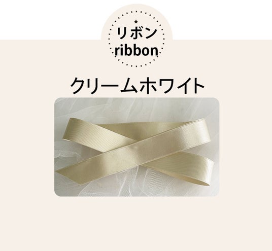 「クリームホワイト」のリボンでおめかし。どなたにも、どんなご用途にもお使いいただけるカラーとしてお選びしました。