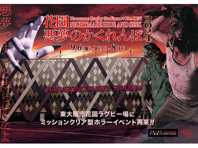 東京都杉並区方南町を拠点とする株式会社HLC 方南町お化け屋敷オバケン(以下オバケン)は、HOS株式会社が管理する東大阪市花園ラグビー場(以下花園ラグビー場)と「花園悪夢のかくれんぼ2024」を2024年9月6日(金), 7日(土), 8日(日)の三日間開催します。