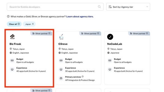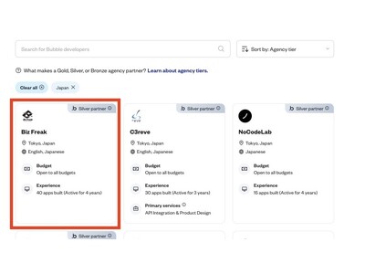 株式会社Biz Freakは、Bubbleノーコードプラットフォームにおいてシルバーエージェンシーに認定されました。これにより、日本国内でのランキング1位を達成しました。