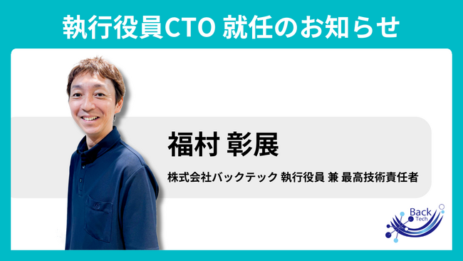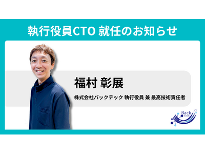 株式会社バックテック(本社:東京都港区、代表取締役CEO:福谷直人 以下、「バックテック」)は、事業成長に向けて、福村 彰展がバックテックの執行役員CTOに就任したことをご報告いたします。
