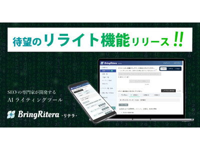 株式会社BringFlower(東京都新宿区、代表取締役:稲田 高洋)は、SEOに強い記事をAIで自動生成するツール「BringRitera(リテラ)」について、新たにリライト機能をリリース致しました。既存のウェブ記事のURLを入力するだけで、その記事の内容を学習し活かした内容にしつつ、最新でよりSEOに強い、ユーザーの検索意図に沿った内容にリライトされます。