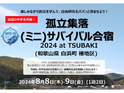 和歌山県西牟婁郡白浜町椿地区にて、中学生を対象とした合宿形式の災害対策ワークショップ「孤立集落(ミニ)サバイバル合宿 2024 at TSUBAKI」を開催することとなりました。現在、本イベントの参加者を募集しております。