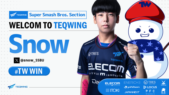 合同会社テックウイング(千葉県千葉市中央区、代表:加藤友大)が運営するeスポーツチーム「TEQWING e-Sports」(https://teqwing-es.com/)は、「大乱闘スマッシュブラザーズ部門」にスノー選手が加入したことをお知らせ致します。