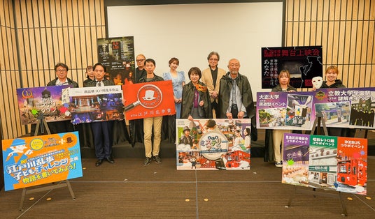2024年7月17日(水)に江戸川乱歩 生誕130周年記念 『としまミステリーフェス』の記者発表会が豊島区庁舎内のとしまセンタースクエアにて開催されました。『としまミステリーフェス』は2024年11月1日(金)~4日(月・祝)に あうるすぽっとをメイン会場、豊島区内 各所をサテライト会場に開催し様々なミステリーコンテンツをお届けするイベントです。