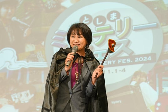 「11月、としまミステリーフェスで様々なイベントを、ぜひ楽しんでください。ここまでミステリーに力を入れる地域はないと思います。江戸川乱歩の怪人20面相をはじめとする作品のワクワク感がこのフェスにもつながっているのを感じます。区内には旧江戸川乱歩邸をはじめ、たくさんの文化施設があります。そういったものを、フェスを通じて色々見て楽しんでもらえればと思います」