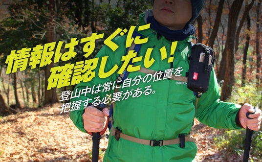 登山では必ず自分の位置情報を把握することが必要です。スマホや地図をリュックから取り出すのが面倒で、自分の位置確認を怠ると、登山道の分岐を見失なってしまい遭難のリスクが高まります。