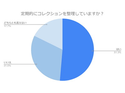 「定期的にコレクションを整理していますか?」の設問では、「はい」と回答した方が約半数でした。