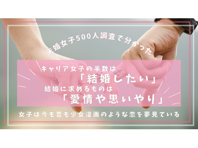 (株)マルヨシ(所在地:東京都港区、代表取締役:武嶋嘉浩)は、この度7月29日より「結婚と結婚生活相談所aisaito(アイサイト)」を開業するにあたり、メインターゲットとなるキャリア女子の真の結婚願望と、結婚に対する心理的障壁を明らかにするため、未婚女子500人(20~40代)を対象としたアンケート調査を実施いたしました。