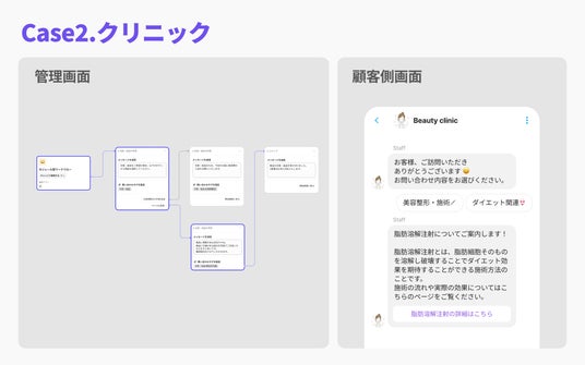 美容整形とダイエット等、メニューごとにフローを設定。希望メニューにあわせて自動で案内を行う