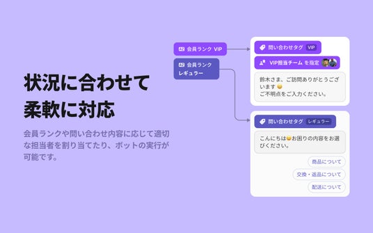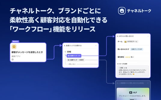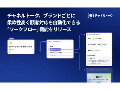 https://channel.io/ja)」は、ノーコードで顧客対応を完全自動化できるワークフロー機能をリリースしました。本機能は、ブランドごとに最適な顧客対応のフローを組むことが可能となり、顧客ランクや問い合わせの優先度に合わせてシナリオを作成し、顧客対応の時間を削減しながらも顧客体験の向上を実現します。