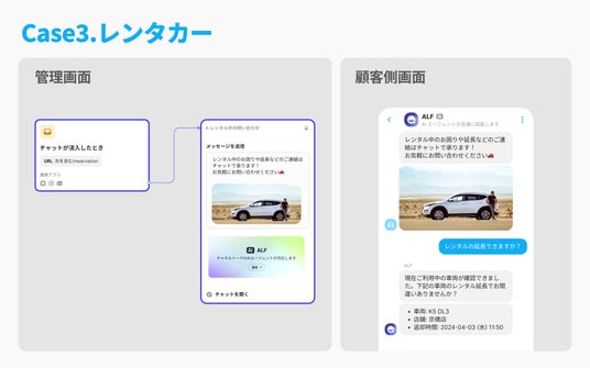 さらにワークフロー機能と生成型AIエージェント「ALF」を組み合わせることで、より多くのシチュエーションで顧客対応の効率化を実現します。「ALF」は、オペレーターと自然に話しているように顧客対応を行い、ブランドが作成したFAQやドキュメントに基づき回答を行います。これにより、ブランドに合わせた柔軟な運用が可能となり、より良い顧客体験を提供します。ワークフロー機能では数クリックで「ALF」の設定が可能です。会員ランク、問い合わせ内容によって「ALF」が作動するのか、オペレーター対応かを自由に設計できます。