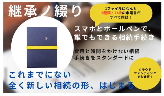 「相続これ1冊(継承ノ綴り」は、家族の大切な資産を守り、より早く次世代へスムーズに引き継ぐためにあります。なくなった後までお金をかけなければいけない社会ではなく、一人でも自分で相続手続きが出来る社会を実現して、少しでも家族が残してくれた財産を使って欲しいという本来あるべき想いから、本商品を開発いたしました。