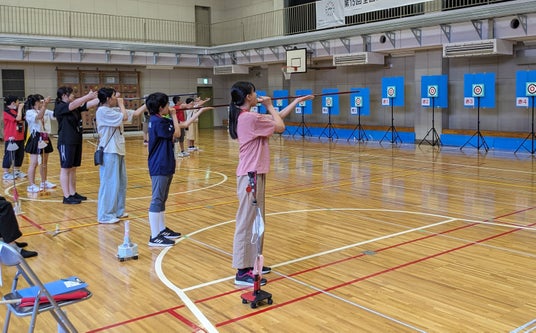 5m~10m先の円形の的をめがけて息を使って矢を放つスポーツです。