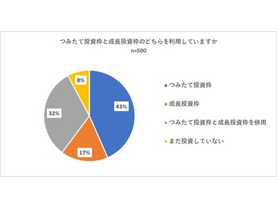 初めに新NISA口座をすでに開設している500名に対し、「つみたて投資枠と成長投資枠のどちらを利用していますか」と質問を行いました。その結果、「つみたて投資枠」が43パーセントでトップとなりました。以下は「つみたて投資枠と成長投資枠を併用」(32パーセント)、「成長投資枠」(17パーセント)、「まだ投資していない」(8パーセント)と続きました。また、「つみたて投資枠」と「つみたて投資枠と成長投資枠を併用」の合計は75パーセントとなり、全体の四分の三が「つみたて投資枠」を利用していることが明らかになりました。