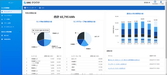 SIRCクラウド計測したデータの自動グラフ化や、CO2排出量の自動記録、閾値設定によるお知らせ機能を搭載。