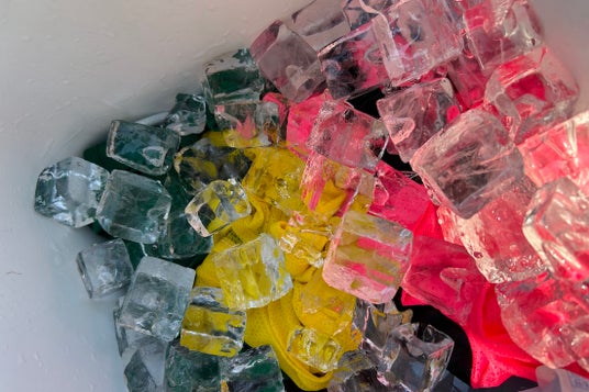 身体を正しく冷やし、熱中症にかかりにくいコンディショニングができれば、問題解決の糸口となるはず(写真はカラービブスの氷漬け)