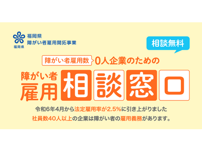 「働く」に関する社会課題をビジネスで解決するキャムコムグループの特例子会社 株式会社 綜合キャリアトラスト(本社:東京都港区浜松町、代表取締役:伊藤努、以下:綜合キャリアトラスト)は、福岡県からの委託事業「障がい者雇用開拓事業」にて、障がい者雇用数が0人の企業(初めて障がい者雇用に取り組む企業等)を対象に、事前準備~採用~安定雇用までサポートする「障がい者雇用相談窓口」に取り組んでいます。本事業に関するウェブサイトを2024年8月1日に公開しました。