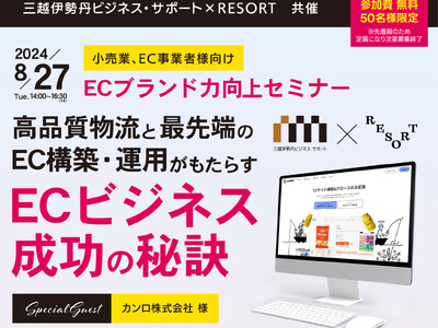 2024年8月27日(火)に、百貨店品質の物流サービスを提供する株式会社三越伊勢丹ビジネス・サポート(代表取締役社長:藤森 健至、本社:東京都新宿区) は、ECサイトのデザインから開発、マーケティング戦略の策定、そして運用サポートまでおこなう株式会社RESORT様(代表取締役社長:CEO 石川 森生、本社:東京都渋谷区)と共同でEC事業者様向けセミナーを開催いたします。