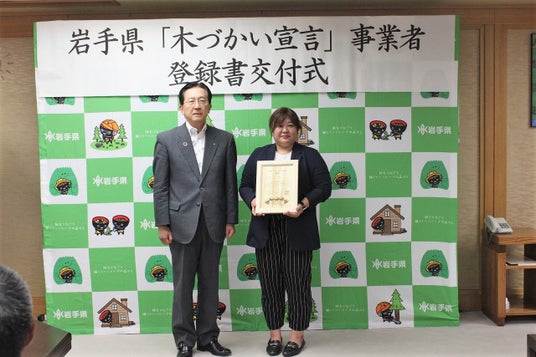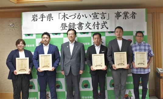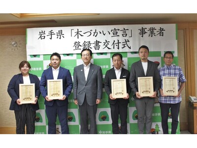 2024年8月6日、岩手県庁にて一般社団法人BlessU(ブレスユー)が岩手県「木づかい宣言」事業者として登録され、登録書の交付式が執り行われました。