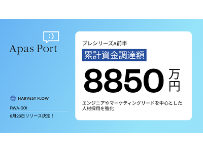 Web3発のプロダクションカンパニー株式会社Apas Port(東京都渋谷区、代表取締役:佐々木大輔)は、シードラウンドでご支援頂いた投資家に加えて、パートナーシップを締結する複数の事業会社、個人投資家からの出資により、累計8850万円の資金調達を実施したことをお知らせします。