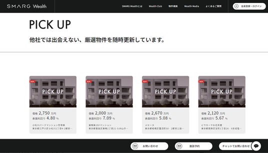 https://www.smarg.jp/ をリニューアル。不動産投資サービス『SMARG Wealth』 ( スマーグウェルス )は当社が得意とする、賃貸中のファミリーマンション投資という新しい投資商品を会員の方へ公開し、販売するサービスです。今後はさらに、お客様の多様なライフスタイルやニーズに応えたご提案に力を入れることで『SMARG』のサービス力を高めてまいります。