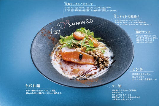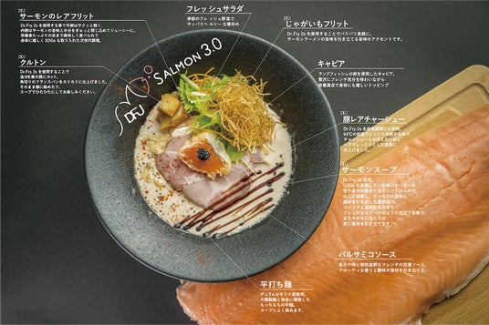 また、サーモンのレアフリットや豚レアチャーシューなどトッピングの調理にも「Dr.Fry 2s」を使用。まさに、「サーモンnoodle3.0」×「Dr.Fry 2s」のコラボが生んだ次世代ラーメンとなっております。