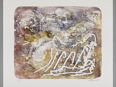 そのような、自らではコントロールしきれない現象を作品に生かしたことで、同じ版でもすべてのプリントの表情が違う、版画作品でありながらそれぞれがオリジナルとなる、モノタイプと呼ばれる作品群が完成した。 ドローイングの周りにある色たちが、石板のうえで起きたこの世界の自然の現象のようなものだとしたら、それを避けるようにして見えてくるドローイングは、人類が獲得したイメージという他にないパラレルなもう一つの世界である。