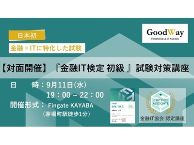 2024年8月26日(月)、株式会社グッドウェイ(代表:藤野 宙志、以下「グッドウェイ」)は『金融IT協会 初級』の主催者である特定非営利活動法人金融IT協会(理事長:山口 省蔵、以下「金融IT協会」)の認定を受けた「『金融IT検定 初級』試験対策講座(以下「試験対策講座」)」の提供を開始いたします。