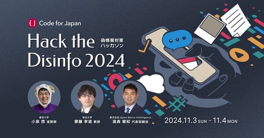 偽情報(ディスインフォメーション)をテーマにした日本初のハッカソン「Hack the Disinfo 2024」(2024年11月3~4日)の開催が決定しました。アメリカ大統領選挙直前に開催される本ハッカソンには、東京大学の小泉悠准教授、明治大学の齋藤孝道教授、株式会社Japan Nexus Intelligenceの高森雅和代表取締役が登壇し、偽情報に関する知見を共有します。最新の知見をもとに、実践的なツール開発や偽情報の分析に取り組む開発者やリサーチャーといったハッカソン参加者50名の募集を開始します。