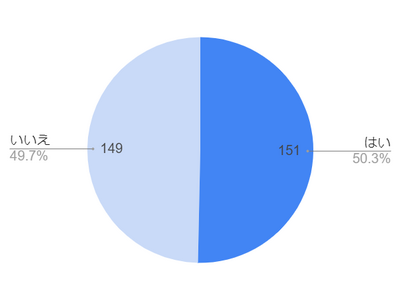 はいと答えた方が僅差で2票上回っていましたが、割合はほぼ半々であることがわかりました。
