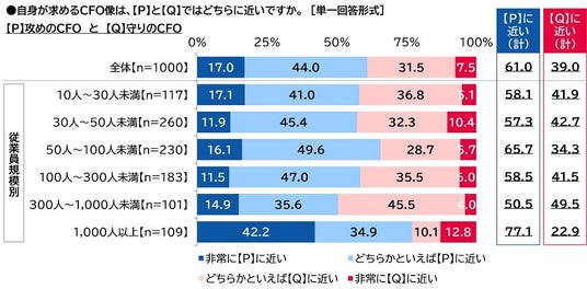 「自分の後任はCFOに任せたい」39%、従業員規模1,000人以上では53%