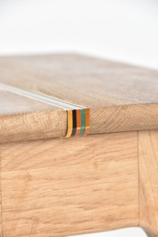 面の間に挟んだ5層のアクリルがポイント。ベッドサイドの照明のそばに置いたり、窓際のプランター置きにしても。ナチュラルな木目がどんな空間にも馴染みます。