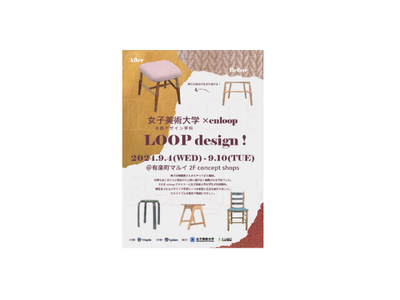 廃棄予定のモノをデザインの力でリメイクし、新たな価値を与え、ムダをなくす社会をつくることをコ ンセプトとした家具ブランド「enloop(R)」と、女子美術大学の学生が共同制作した、世界でたった一つ のサステナブルなリメイク家具販売のイベントです。今回のイベントでは、“新品よりも、ずっとい い”をテーマに商品展開をします。廃棄予定の椅子の一部を使用し、マガジンラックやサイドテーブルなどの芸術と家具が融合した、まったく異なるプロダクトへと生まれ変わらせました。