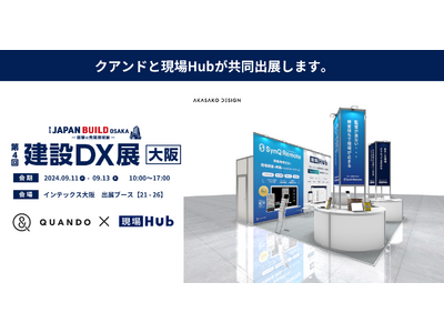 株式会社クアンド(本社:福岡県北九州市、代表取締役CEO:下岡 純一郎)は、現場Hub株式会社(本社:東京都渋谷区、代表取締役CEO:岡田 光正、以下「現場Hub」)と「第4回 建設DX展 大阪 (JAPAN BUILD OSAKA)」に共同出展することをお知らせいたします。