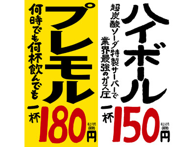 創業時から一貫して生ビールが驚安価格の一杯180円!現在はサントリー(株)の上級ビールである「ザ・プレミアムモルツ」を180円でご提供。もちろん何杯飲んでも価格は変わりません!10杯飲んだってたった1800円です。さらにハイボールも創業時から一杯150円という格安価格を守り続けております。(価格は税別です)
