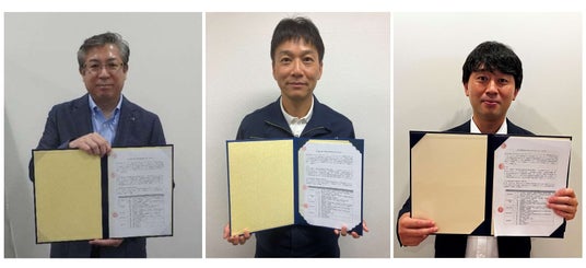 左からエア・ウォーター北海道株式会社 代表取締役 庫元達也氏、株式会社森とみずのちから 代表取締役 貝本隆三氏、一般社団法人 CoIU設立基金 代表理事 井上博成