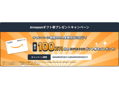 GOファンド株式会社は、2024年9月1日より、「キャンペーン期間内の入金額合計に応じてAmazonギフト券をプレゼントするキャンペーン」を開始したことをお知らせいたします。