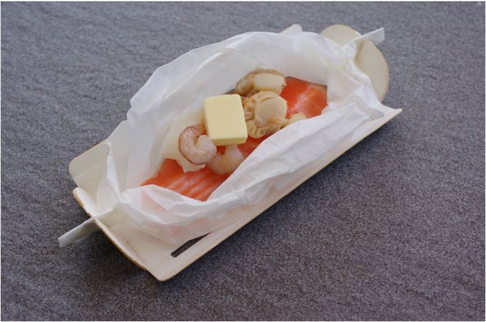 包み焼き商品は手軽に「出来立て」を味わえるためこれまでにも一定の需要があったものの、安全確認のため出荷前に金属探知機を通す必要があることからアルミホイルを使用した包み焼きの商品化は難しく、同社では製造を中断していました。そんな中、同大学との産学連携プロジェクトによって、アルミホイルの代替素材を用いた形状保持や調理上の安全性などを実現した包み焼き商品が完成しました。調理皿の素材や形状の検討を繰り返し、完成した構造は特許出願中です。「こだわり食材で作る絶品料理」をコンセプトにメニュー開発を行い、電子レンジで温めるだけで誰でも簡単にこだわり食材による一品が完成します。
