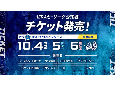 台風10号の影響により中止となりました8月30日(金)~9月1日(日)横浜DeNA戦は、10月4日(金)~6日(日)にバンテリンドームで振替開催いたします。