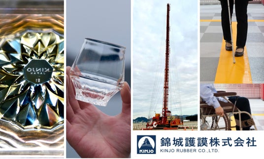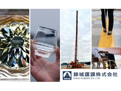 錦城護謨は、創業以来培ってきた『技術力』を基に、自動車、スポーツ用品、食品、医療機器など多様な分野で、年間数千種類に及ぶゴム部品を製造し、大手メーカーのパートナーとして人々の暮らしを支えています。また、2025年大阪・関西万博の会場地、夢洲の地盤改良工事にも携わり、土木事業でも目覚ましい活躍を見せています。近年では、屋内専用ゴム製視覚障害者用歩行誘導マット『歩導くんガイドウェイ』を主力製品とする福祉関連事業や、割れないゴム製のグラスで話題の自社ブランド『KINJO JAPAN』による新製品開発を通じ、世界展開にも挑戦しています。