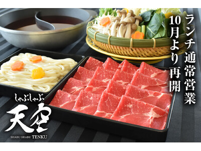 52階の高層階レストラン しゃぶしゃぶ「天空」のランチ営業を10月より再開いたします。南大阪エリアを一望できる大きな窓からの絶景を楽しみながら、しゃぶしゃぶ「天空」では新鮮な食材を使ったしゃぶしゃぶを特製の出汁で提供いたします。今回の
